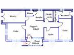 A nappaliból egy közlekedőn keresztül jutunk a többi helyiségbe. Nevezetesen a fürdőszoba, a mosókonyha, és a két másik szoba, amelyek ablakai a belső udvarra néznek. A fürdőszoba sarokkádas kialakítású. A családi házban két wc található, az egyik a fürdőben, a másik a mosókonyhában. A mosókonyhából nyílik a kazánház.