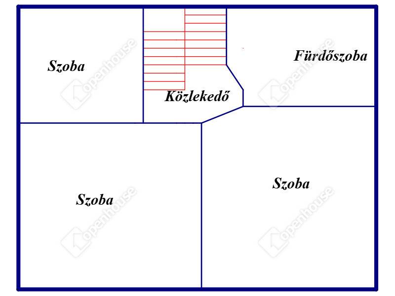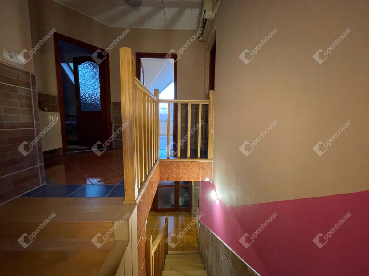 A nappaliból lépcsőn keresztül jutunk fel a tetőtérbe , ahol a három hálószoba és a tágas fürdőszoba található.
