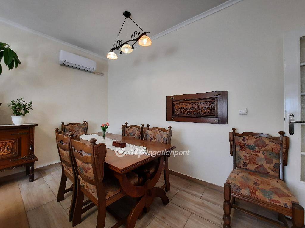 Balaton déli part, Siófok, 75 m2 családi ház eladó. Az ingatlan a Belvároshoz közel, forgalmas út mellett helyezkedik el. A földszintes lakóépület több elemében az elmúlt években felújításra került, nyílászárók nagy részben korszerű műanyag szerkezetek, a külső homlokzat hőszigetelést és új vakolatot kapott, a tető, tetőhéjazat megújult. A belső térben új padlóburkolatok készültek, közlekedőben elektromos padlófűtéssel. A fűtés elektromos infra panelekkel megoldott. A lakótérben hűtő fűtő klímaberendezés került kiépítésre. A jól karbantartott épület kedvező tájolású, déli-nyugati benapozású. A konyhabútor a vételár részét képezi, a többi berendezés további megegyezés tárgya lehet. A telek területe 316 m2. A lakóépület részben alápincézett, mögötte nyári konyha és fedett terasz található. Balaton-part 1500 méterre, autóval 5 perc alatt elérhető. Otthon Start Program. Bővebb információért keressen telefonon!