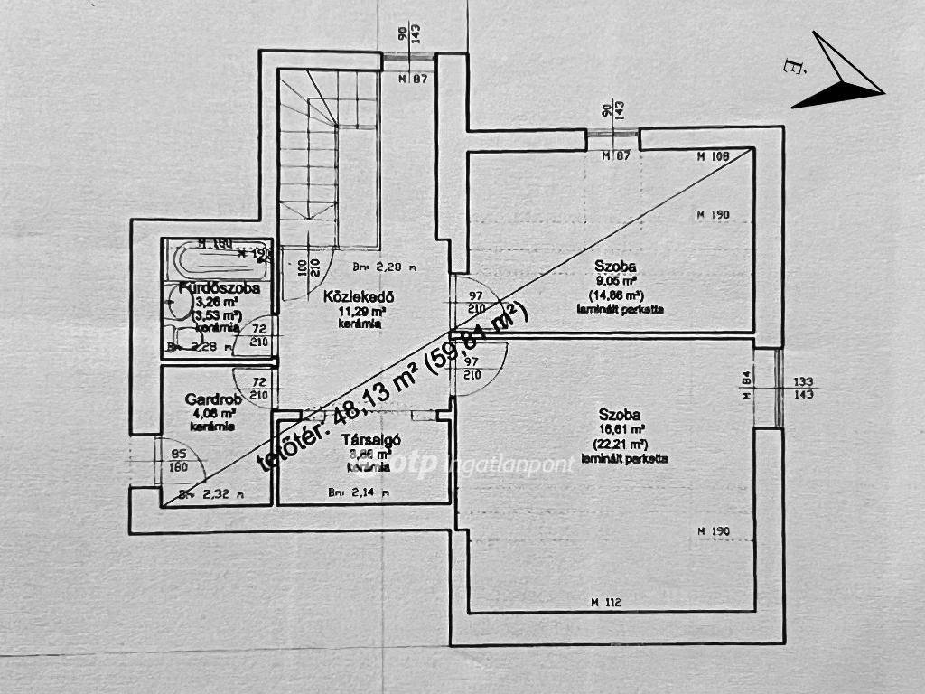 A családi ház tetőtere részben beépített, amely növeli a hasznos alapterületet és a kihasználhatóságot.