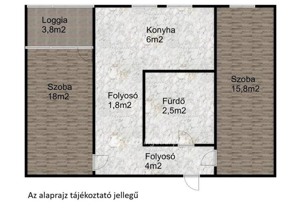 2 szoba burkolata laminált padló, konyha és előszoba, folyosó burkolata járólap