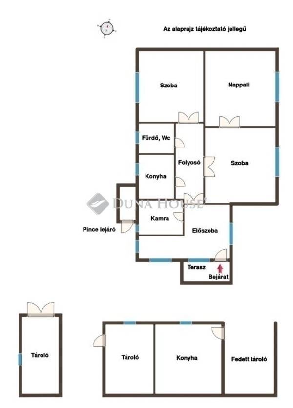 Eladó tégla családi ház kiváló adottságokkal!Megvételre kínálunk egy 725 m²-es, két utcára nyíló telken elhelyezkedő, utcára néző téglaépítésű családi házat, amely ideális választás lehet családok vagy akár befektetők számára is.Az ingatlanban 3 kényelmes méretű szoba található, melyeket jó fényviszonyok jellemeznek, így a lakótér világos és barátságos hangulatú. A fűtésről gázkazán gondoskodik, biztosítva a komfortos hőmérsékletet a hidegebb hónapokban is.A házhoz pince is tartozik, amely kiválóan alkalmas tárolásra vagy egyéb célokra.A telken több melléképület is helyet kapott:egy különálló, 12 m²-es tároló,egy másik épületben 13,88 m²-es tároló,ugyanitt egy 16,38 m²-es konyha,valamint egy 18,4 m²-es fedett tároló.A kertben fúrt kút is rendelkezésre áll, ami nagy segítséget jelent a locsolásban és a kert gondozásában.A két utcáról megközelíthető telek számos lehetőséget kínál: akár további beépítésre, vállalkozási célra vagy egyszerűen csak a kényelmesebb megközelítés érdekében.Ez az ingatlan remek lehetőséget kínál mindazok számára, akik tágas telket, praktikus elrendezést és sokoldalúan kihasználható melléképületeket keresnek.Ne hagyja ki ezt a kiváló lehetőséget jöjjön el, és nézze meg személyesen!