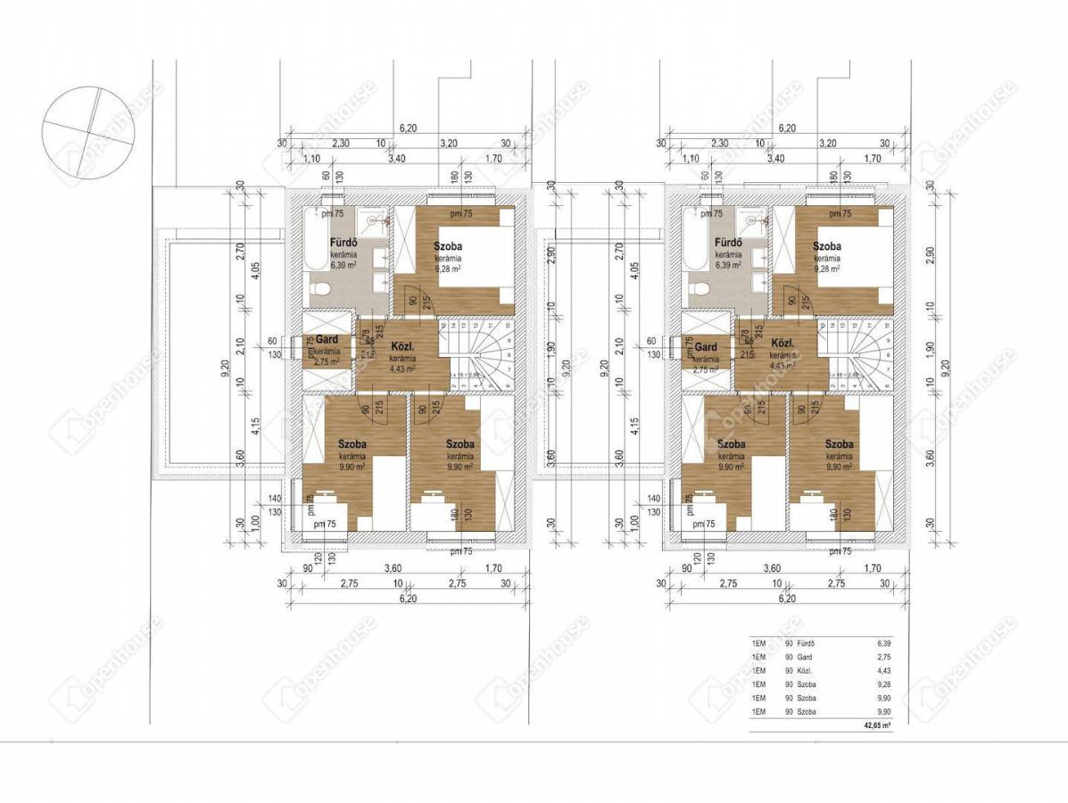 A lakás alsó szintjén található egy amerikai konyhás nappali, az emeleten pedig 3 szoba, fürdőszobával és gardróbbal.