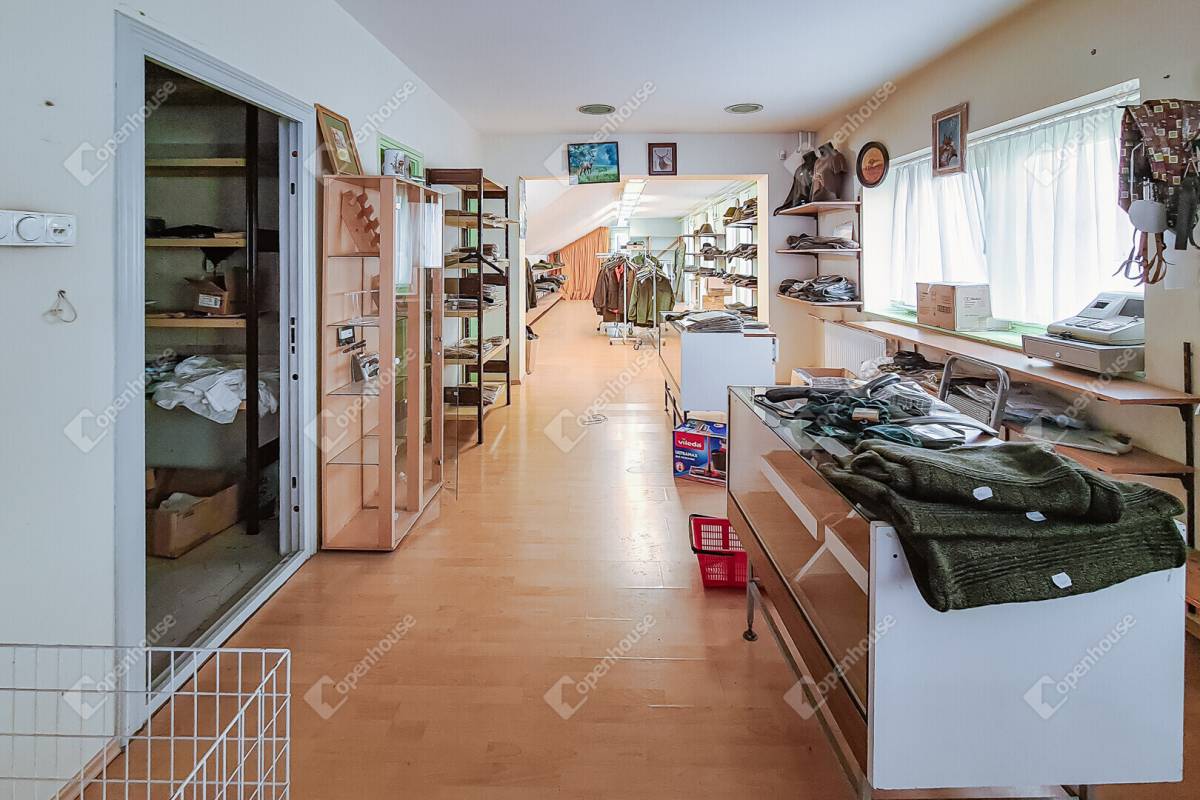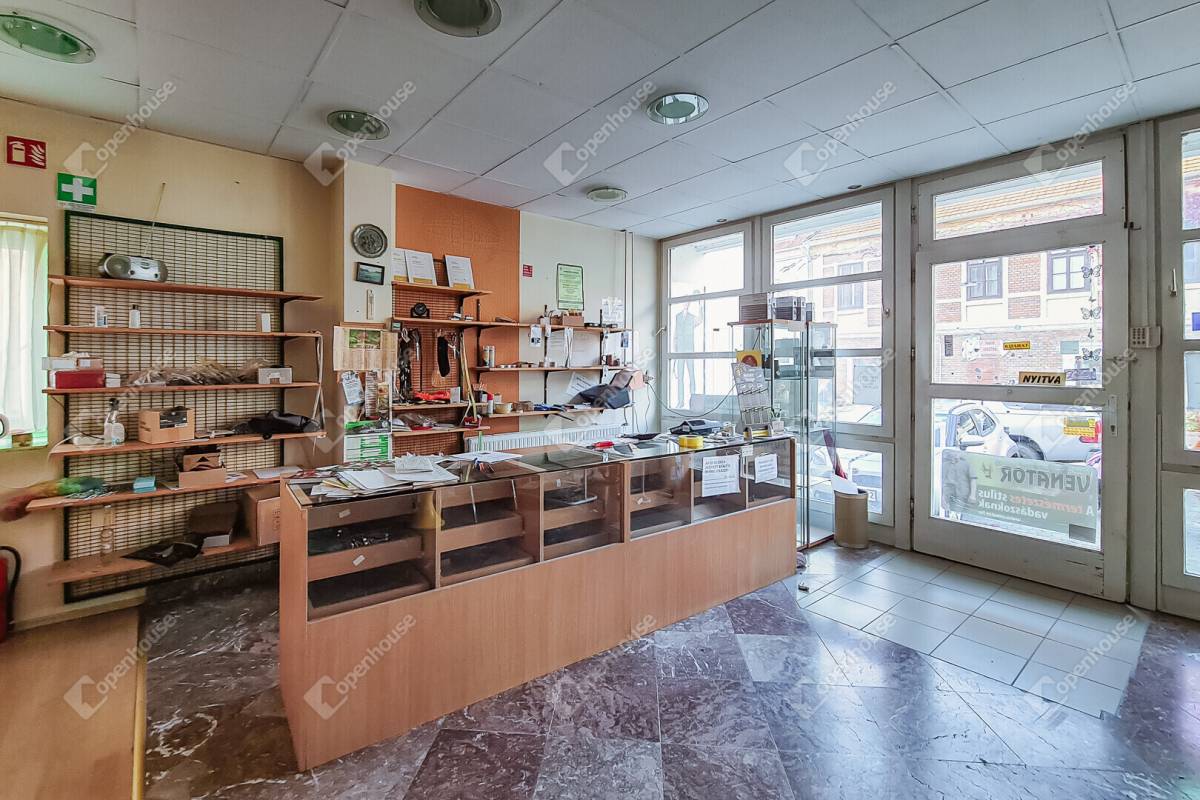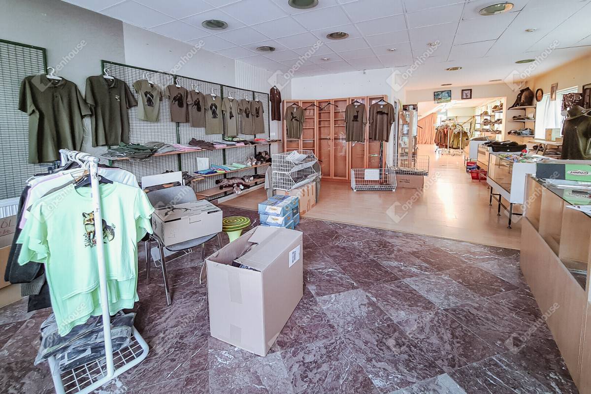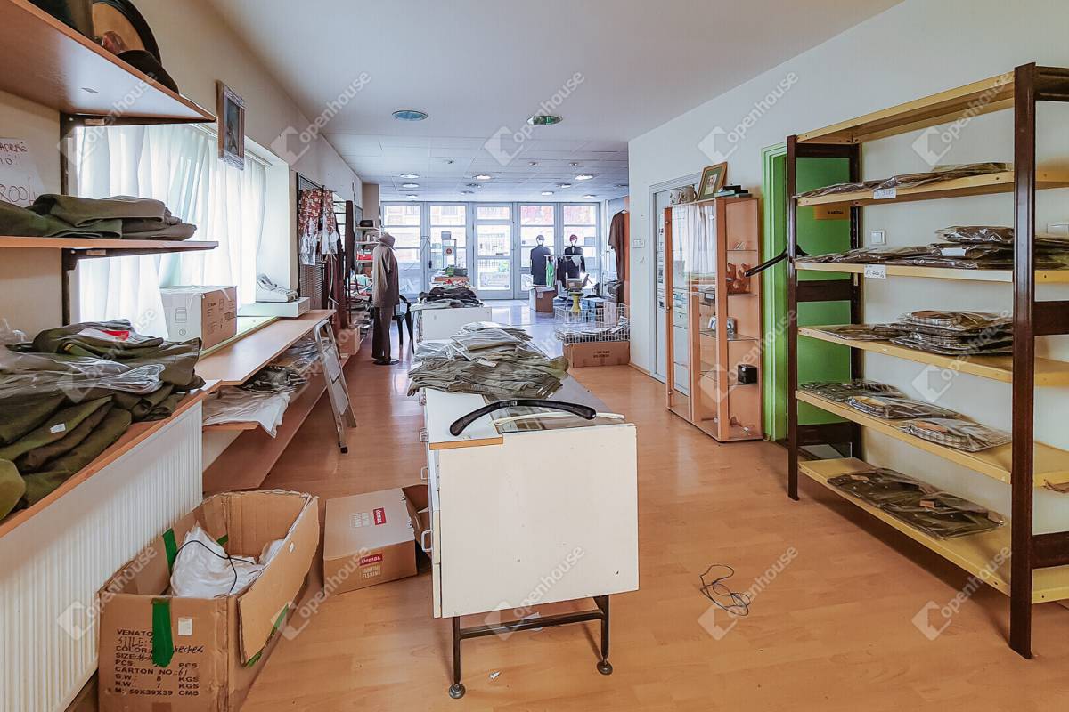 Az ingatlan jelentős részét kitevő, közel 120 m²-es, egy légterű eladótér igény szerint alakítható, mely kiváló lehetőségeket rejt belvárosi üzletének beindításához. A világos helyiség nagyobb belső részén laminált parkettával, kisebb, bejárat felőli oldalán járólappal burkolt. Az eladótérből nyílik egy 4 m²-es, bepolcozott raktárhelyiség, egy 2 m²-es személyzeti mosdó és WC, valamint egy hasonló méretű öltöző, mely igény szerint könnyen további vizes helyiséggé is alakítható.