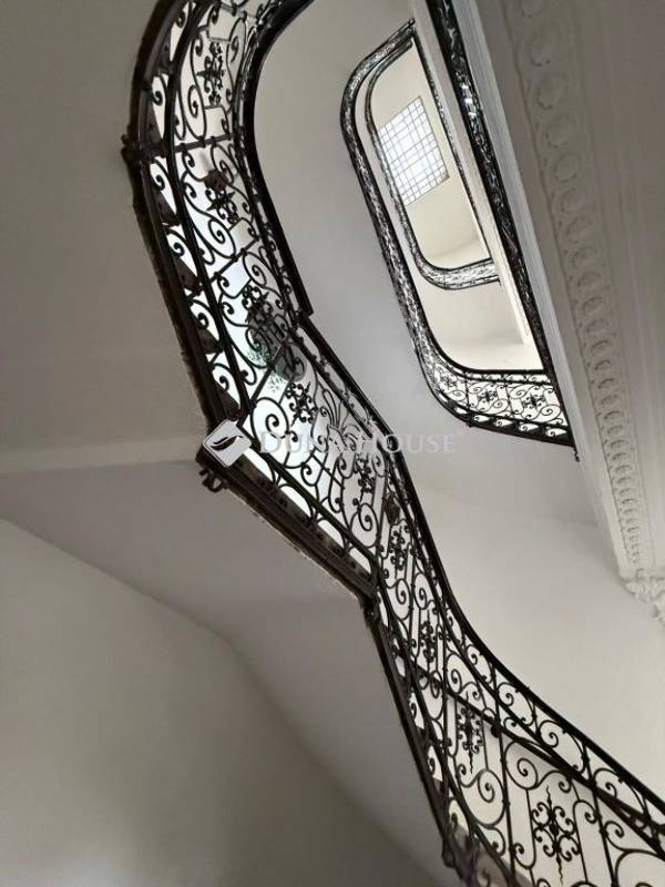 -Rendezett, tiszta lépcsőház márványlépcsőkkel és kovácsoltvas korláttal, amely megőrzi a polgári hangulatot.