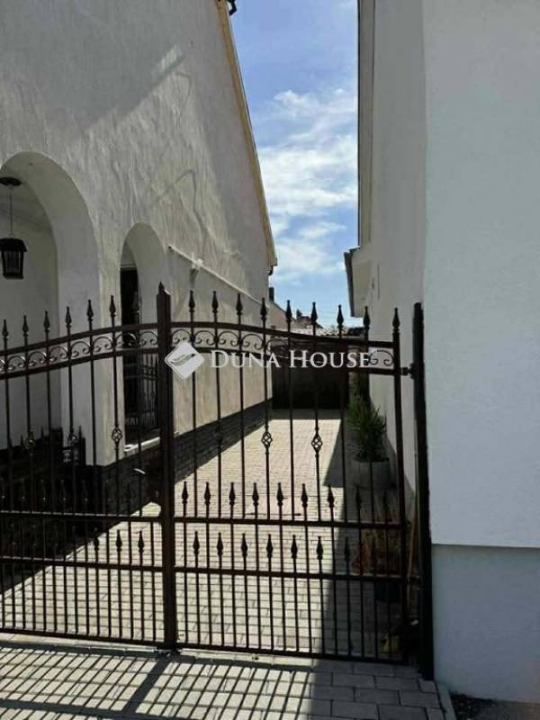 Az ingatlan egy 195 m²-es, teljesen térkövezett telken helyezkedik el, rendezett udvarral és praktikus kialakítással.
