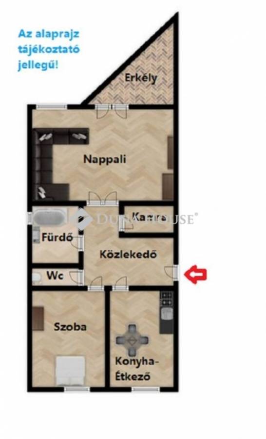A lakás jó elrendezésű, a külön helyiségben található WC és a kamra praktikus megoldást jelent a mindennapokban.