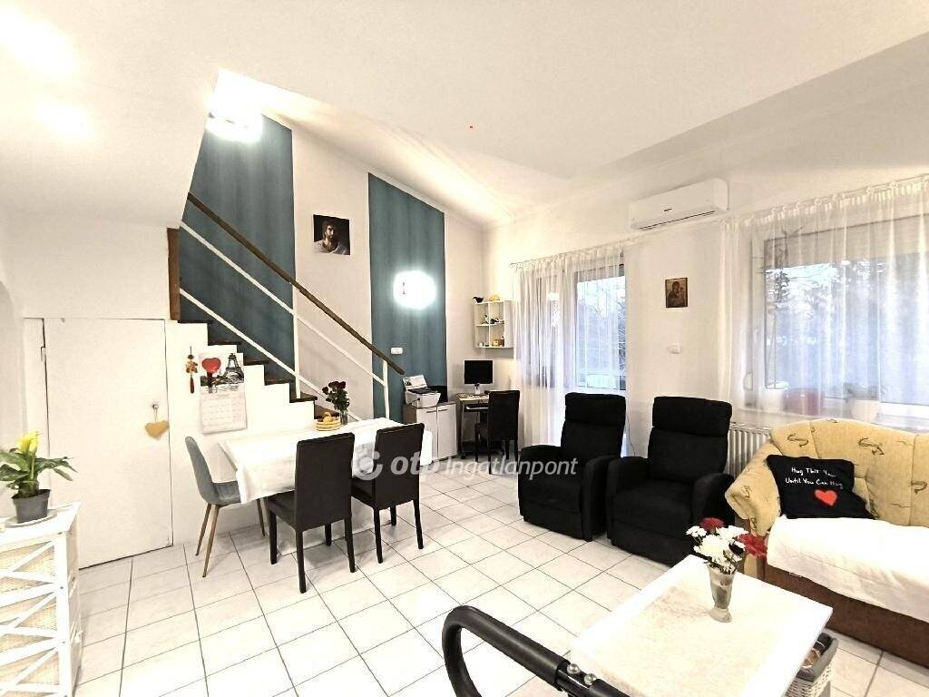 Az ingatlan folyamatosan karbantartott. Minőségi anyagokkal épített, elegáns, átlátható, jó elrendezésű otthon. A tágas, napfényes nappaliból egy 6 nm-es erkély nyílik, ahonnan rálátunk a kertre. A lakás belső kétszintes, galériás, praktikus tárolási lehetőségekkel kialakítva. 2021-ben a fürdőszoba és a konyha felújítása történt. A szobákban laminált padló, egyéb helyiségekben pedig kerámialap burkolat van.
