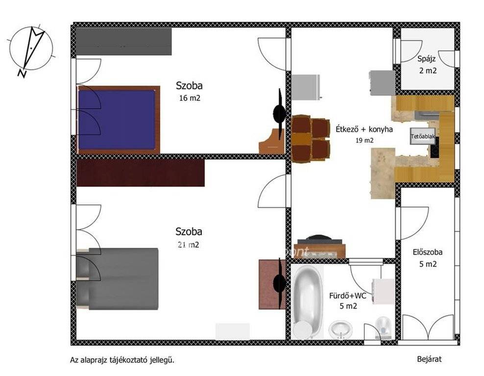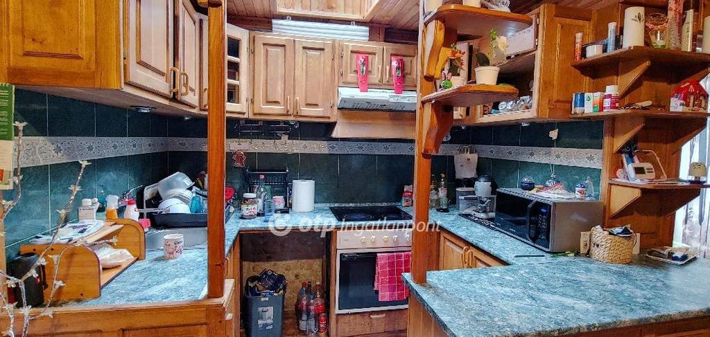 A ház 1960-ban épült beton alapon vegyes falszerkezettel, a tető fagerendás, cseréppel ellátott nyeregtető. Hasznos alapterülete 68 m2, melyben előszoba, 2 szoba, világos amerikai konyhás étkező (tetőablakkal!), spájz, fürdő + WC egyben található. A telek összközműves, víz, gáz, villany 3 fázis, főépületben 3x25A, melléképületben 3x20A és a szennyvízelvezetés csatornába megoldott. Fűtésről cirkó gázkazán gondoskodik, de van lehetőség kandallóval is. Melegvizet mindkét épületben villanybojler biztosítja. Zömében fa nyílászárók találhatóak, az előszobában szimpla üveges, alumínium keretes ajtó lett beépítve és fix, szintén alumínium keretes ablakok találhatók. A konyhában lévő tetőablak beépítésével a ház világosnak mondható. A szobákban laminált padló, a többi helyiségben esztétikus járólap található.