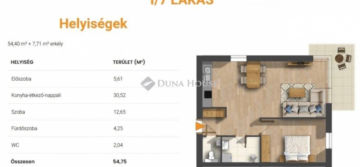Hatvani kert társasház első emeletén eladó 1/3 számú lakás. A lakás dél-keleti tájolású, 55 nm, + 7,5 nm erkéllyel. A lakásban található konyha étkező ,nappali, egy db szoba és egy fürdőszoba. A lakáshoz tartozó erkély a nappalin keresztül megközelíthető.Ne hagyja ki ezt a kivételes lehetőséget, hogy saját otthonául köszönthessen egy igazán prémium kategóriájú lakást a Hatvani kertben. Vegye fel velünk a kapcsolatot még ma, és tegyen szert egy érték tartó ingatlanra, mely hosszú távon biztosíthatja Ön és családja jólétét. Kiváló befektetési lehetőség, lehetőség van most arra hogy a vételárból akár 10 % engedményt kapjon.A lakások optimális elrendezése lehetőséget ad arra, hogy fiatal párok kezdő otthona vagy első albérlők legyenek. A földszinti lakás terasszal és kertkapcsolattal is rendelkezik. Az első emeleten négy jó elosztású lakás található, erkéllyel.Műszaki paraméterek:- AA+ energetikai besorolás-Levegő-víz hőszivattyú-Porotherm 30N+F falazat-Austrotherm 15 cm-es EPS homlokzati szigetelés-3 rétegű hőszigetelt műanyag nyílászárók-Padlófűtés lakásonkénti vezérléssel-Klíma hűtés A társasházhoz egy 8 férőhelyes mélygarázs, 5 férőhelyes felszíni parkoló és 8 db tároló tartozik, melyek külön-külön megvásárolhatóak (10-5-5 millió Ft).A projekt célja, hogy egy olyan lakókörnyezetet hozzon létre, ahol minden szempontból az otthon érzés dominál. Kérjen személyre szabott ajánlatot.