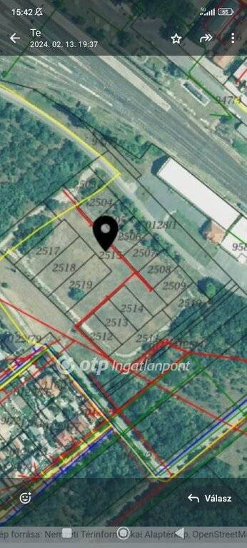 Minden közmű az utcában elérhető, a villany a telekhatáron található.