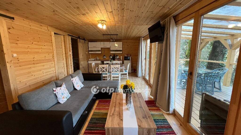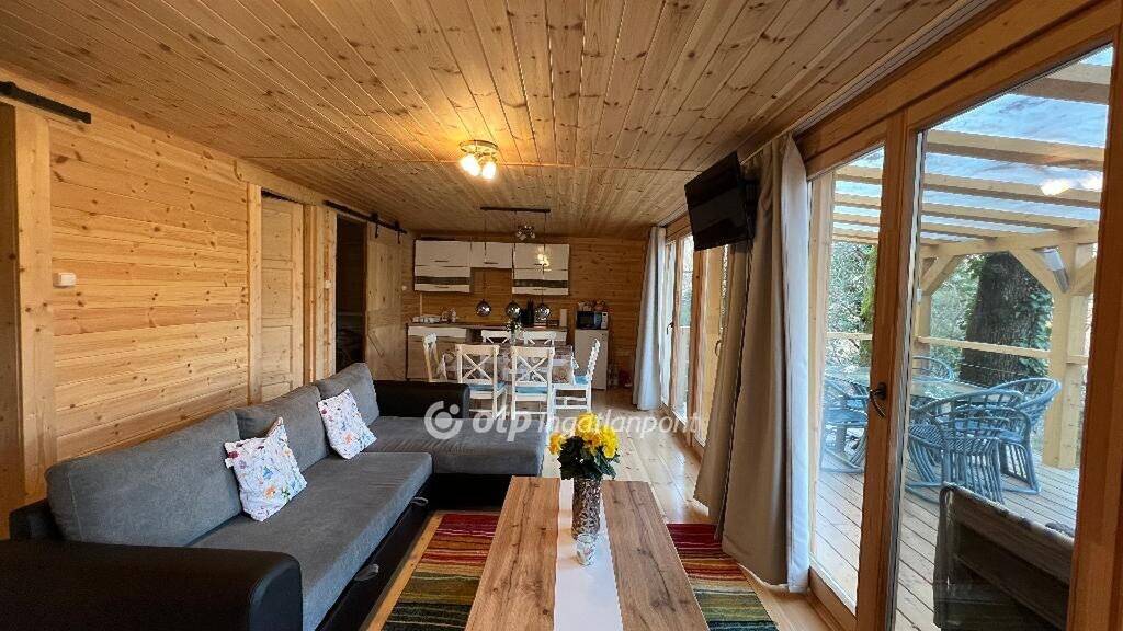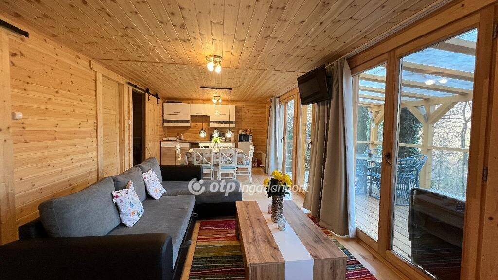 A felújítás során kialakításra került egy tágas, világos, panorámás nappali, amely egy légtérben helyezkedik el a konyhával és az étkezővel, ezáltal modern, jól élhető életteret biztosít, továbbá két kényelmes méretű szoba és egy igényesen kialakított, modern fürdőszoba is helyet kapott az ingatlanban. A nappali közvetlen kapcsolatban áll egy nagy méretű, panorámás terasszal, amely tökéletes helyszíne lehet a reggeli kávézásoknak vagy a nyugodt esti pihenésnek, miközben a környező erdő és a természet közelsége különleges hangulatot teremt.