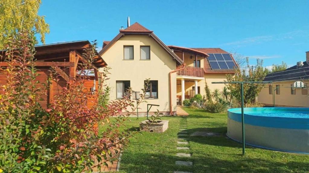 Vendéglakrész: Saját fürdővel rendelkező szoba a lépcsőházból nyílva.Kert és szabadidő:A telek teljesen körbekerített, gondozott. Tartozik hozzá egy felszerelt medence, 16 méter mély fúrt kút, kerti kiülő, szerszámos faház és egy tyúkudvar is.