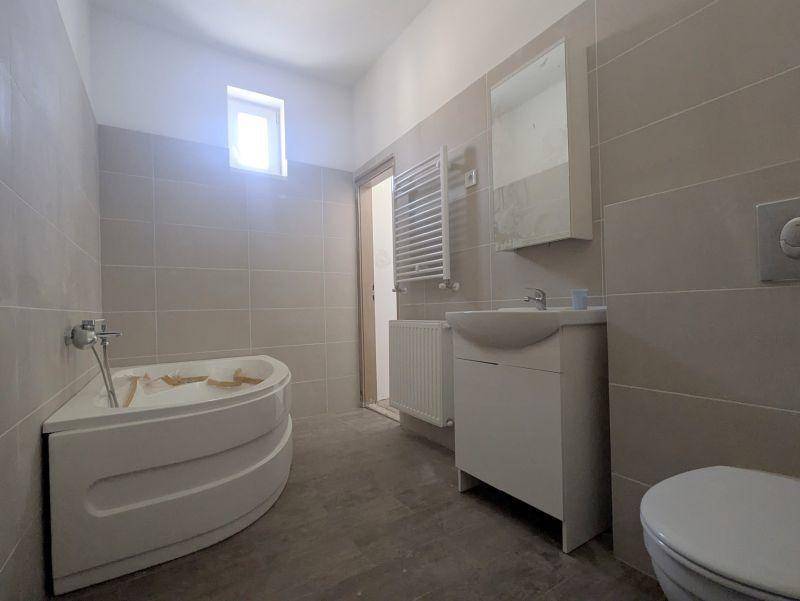 Burkolatok: Magas kopásállóságú hideg- és melegburkolatok, modern szaniterek a fürdőszobában.