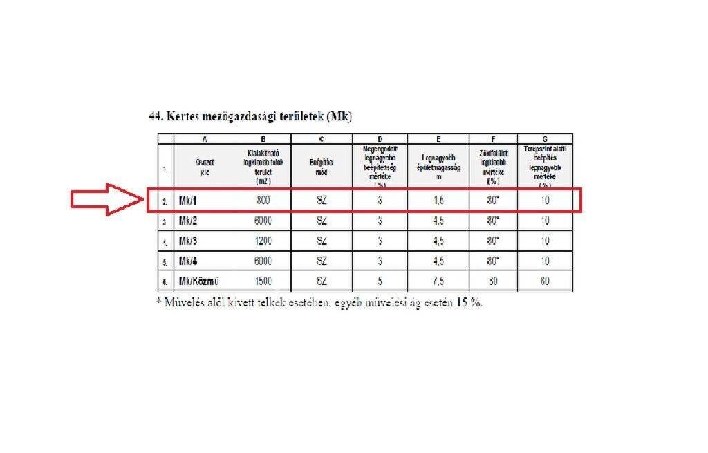 A telek 3%-a beépíthető, a környék zöld nyugalmában már sok lakóház áll. Az építmény maximális magassága 4,5 méter lehet. Miután kiemelt zöldövezeti rész, így a zöldterületből 80%-ot meg kell tartani.
