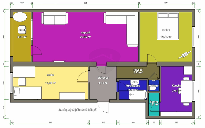 A nappali tágas nappali szerepét is betölti, így kényelmes közösségi térként működik a mindennapokban. A három külön nyíló szoba lehetőséget ad arra, hogy minden családtagnak saját tere legyen. A lakás közepes állapotú, így új tulajdonosa saját igényei szerint alakíthatja tovább.