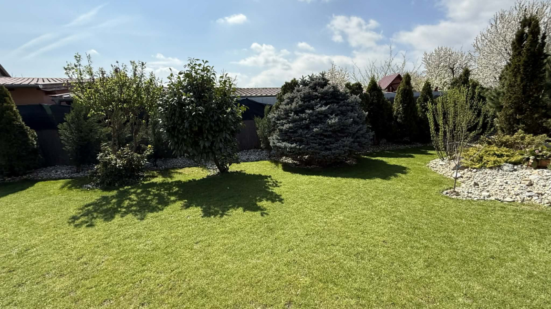 Robotfűnyíró,öntözőrendszer saját esővízkúttal,SAT-rendszer,grillező,cserépkályha,garázs,műhely,fatároló!