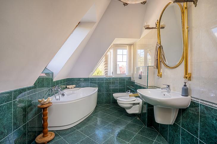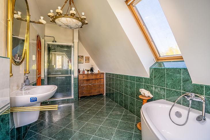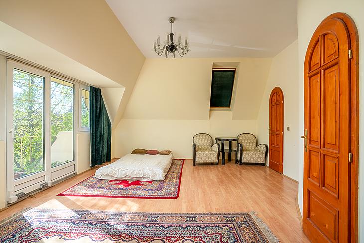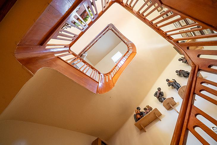 A 450 m² lakóterülettel rendelkező ház három szintjét, melyet egy körtefából készült lépcsőház köti össze, összesen 4 szoba és 2 fürdő,egy gardrób, egy étkezős konyha, gépészet, mosókonyha, hatalmas közlekedő és két raktár.