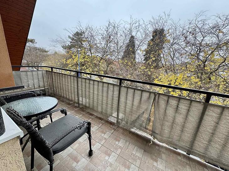 A nappaliból tudunk kijutni a tágas 10nm-es erkélyünkre.