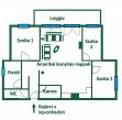 Az amerikai konyhás nappali mellett, előszobával, fürdőszobával külön WC-vel, és 3 hálószobával rendelkező lakás.