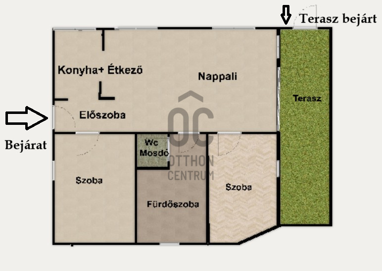 Színvonalas helyen, amerikai konyha+ étkező, nappali plusz 2 hálós, fürdőszobás, DK fekvésű teraszos lakás