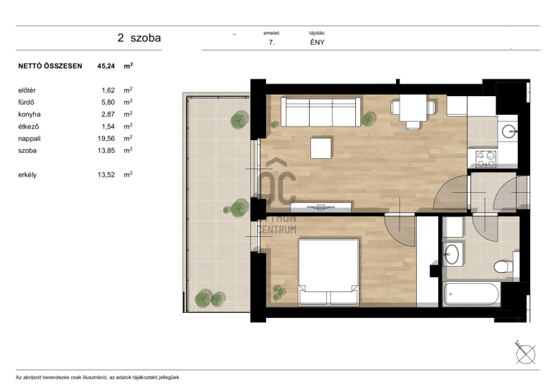 Hatalmas privát erkély: A 13,5 m²-es terasz méretéből adódóan valódi kiterjesztése a lakásnak – tökéletes helyszín reggeli kávézáshoz, esti borozáshoz vagy akár egy szabadtéri olvasósarok kialakításához.