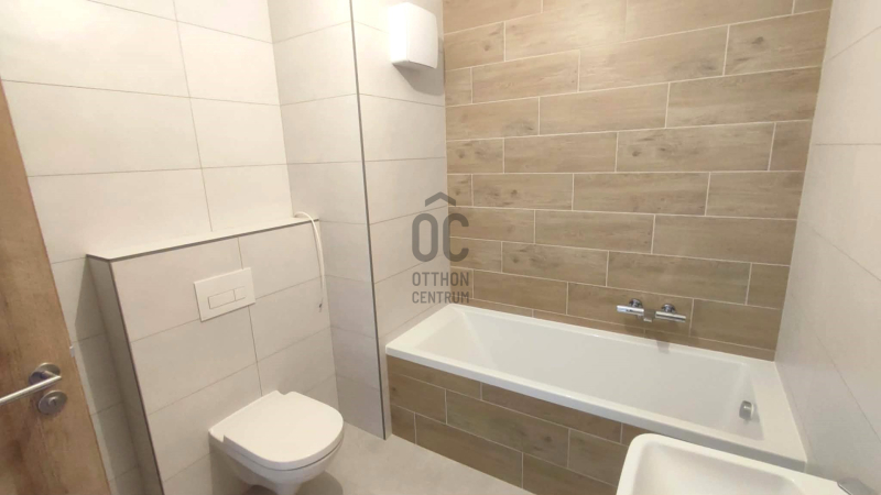 Modern fürdőszoba (5,8 m²), extra elektromos törölközőszárítóval a maximális komfortért.