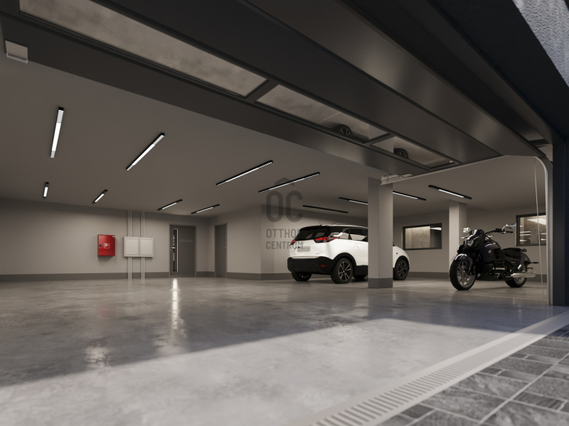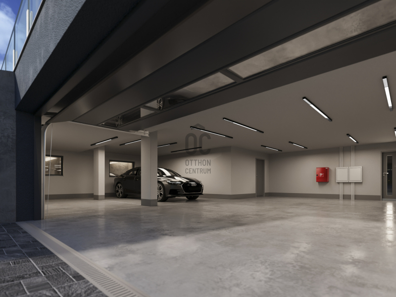 Az ikerházhoz 2 db teremgarázs hely tartozik, amelyek külön megvásárolhatók, darabonként 10 millió Ft-ért. Az ingatlanhoz ajándék tároló (12,6 m²) és 1 db gépkocsi-beálló is jár.