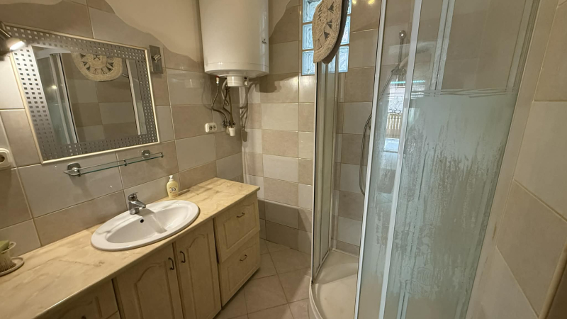 Három tágas,világos szoba,folyosó,konyha és spájz,valamint fürdőszoba található zuhanyzóval.