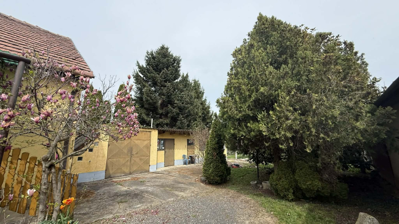 Az udvar gondozott,garázs,műhely,tárolóhelyiség található,illetve pince.