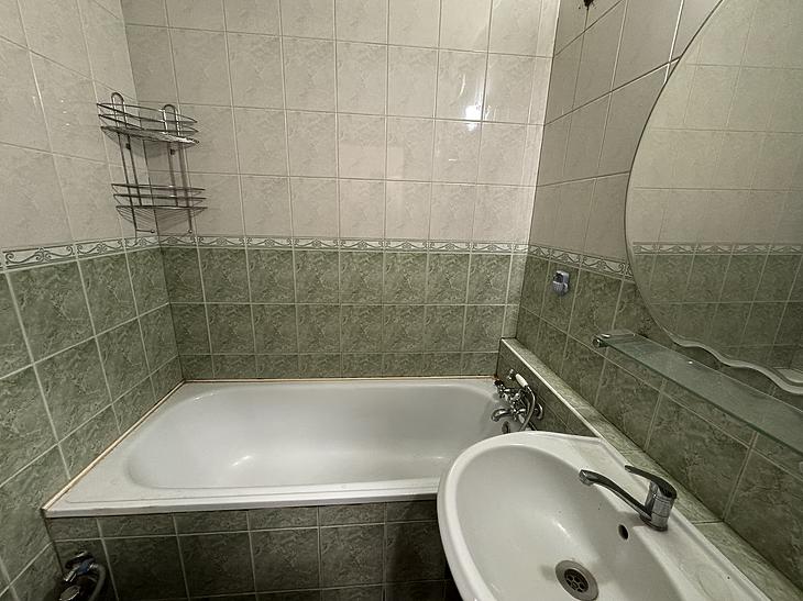A vizeshelyiségek modern, letisztult járólapot kaptak, míg a lakás többi részét laminált padló burkolja.