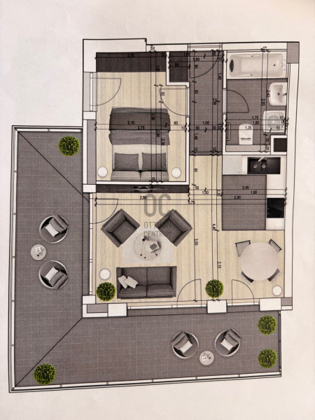 A lakás egyik legnagyobb értéke a lenyűgöző, 28 m²-es terasz, amely kiváló lehetőséget biztosít pihenésre, étkezésre vagy akár egy zöld oázis kialakítására a város közepén.