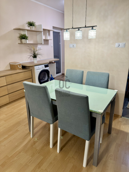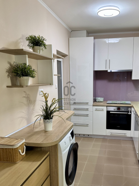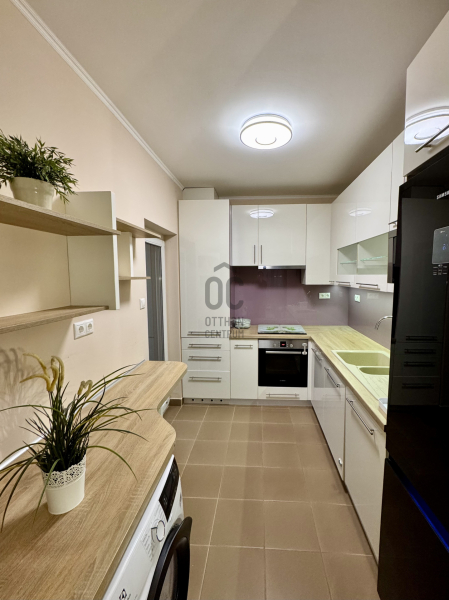 A lakás jó állapotú, modern és igényesen kialakított. A letisztult enteriőr időtálló eleganciát képvisel, miközben a praktikus megoldások a mindennapi kényelmet szolgálják. Az előszobában és az egyik hálószobában nagyméretű, beépített gardróbszekrények biztosítják a rendezett tárolást, a lakás több pontján pedig egyedi, ötletes asztalosmegoldások emelik a tér funkcionalitását. A lakás egyik hangsúlyos eleme az egyedileg gyártott, prémium minőségű konyhabútor, amely a beépített gépekkel együtt a vételár részét képezi. A további berendezési és használati tárgyak külön megállapodás tárgyát képezhetik.