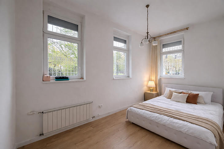 Az ingatlan utcai nézetű, nagy ablakainak köszönhetően rendkívül világos, barátságos hangulatú. A praktikus elrendezés és a letisztult, modern kialakítás kényelmes életteret biztosít, míg az egy légtérben kialakított nappali–konyha megoldás tágas érzetet kelt.
