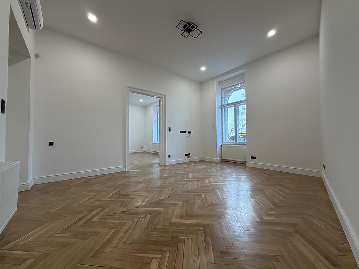 Kiadó egy kivételes adottságokkal rendelkező, 100 m²-es, teljes körűen felújított lakás Budapest I. kerületének egyik legkedveltebb részén, Vízivárosban, a Bem József téren.