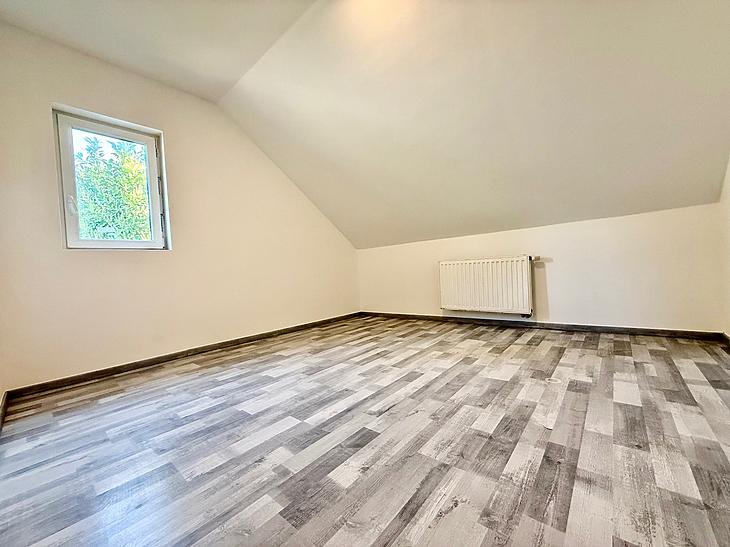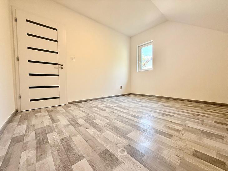 Az emeleten amerikaikonyhás nappali, 2 szoba, fürdő és egy gardrób istalálható.