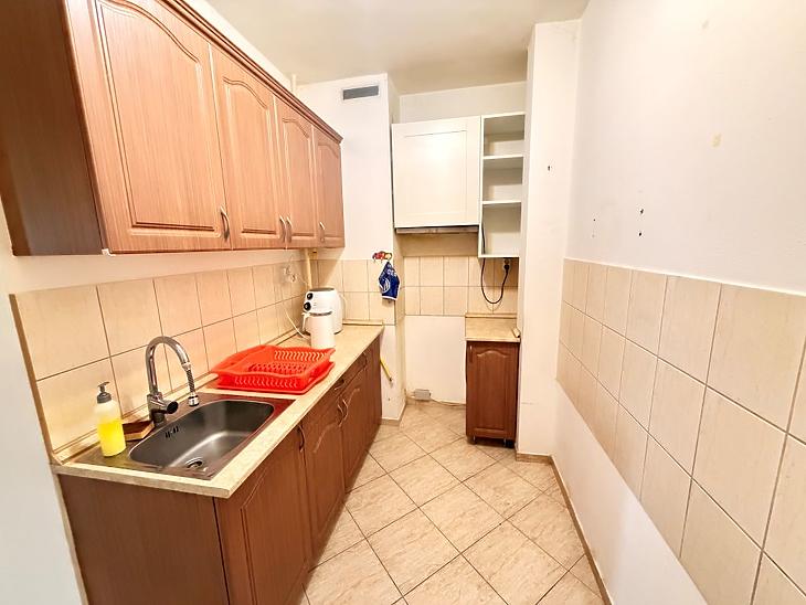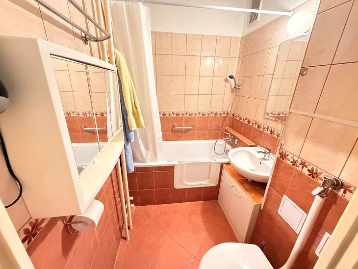 A fürdőszoba kádas, jó állapotú, a konyhabútor szintén megkímélt és az ár részét képezi.