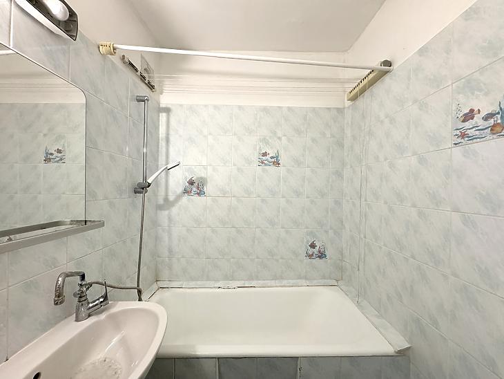 A fürdőszoba káddal rendelkezik, a WC egy külön helyiségben található.