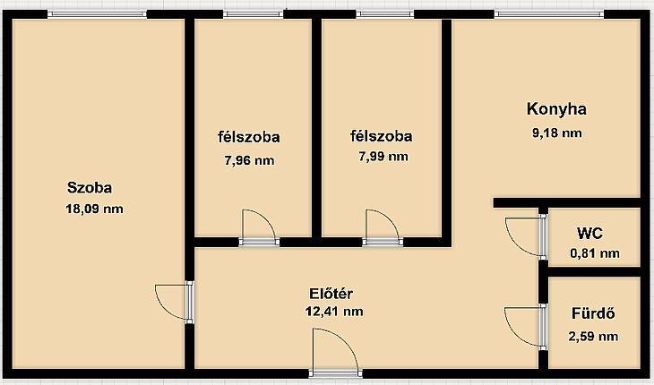 Óbudán eladásra kínálunk egy 4 emeletes társasház 3.emeletén lévő 59 nm-es 1+2 félszobás panellakást.