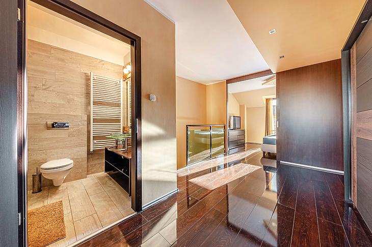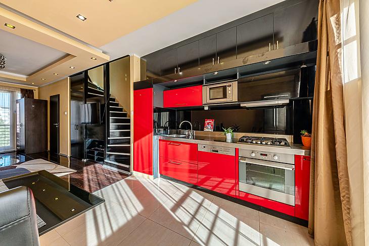 A modern kialakítás és a világos terek kellemes, otthonos hangulat.