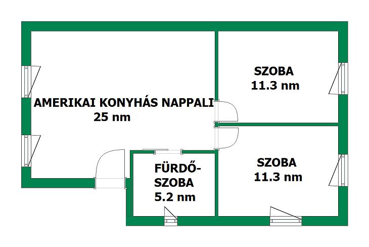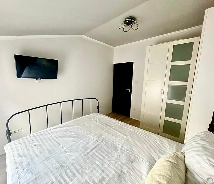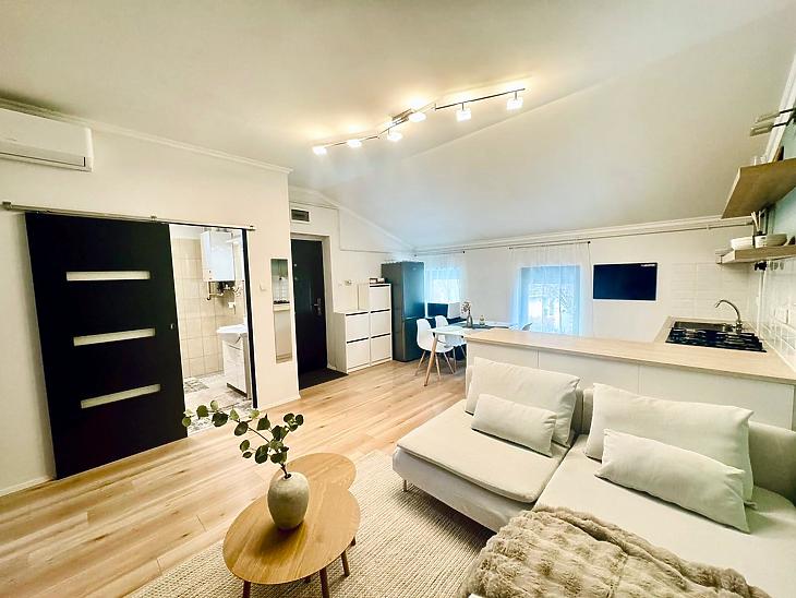 • Világos amerikai konyhás nappali + 2 külön nyíló, kényelmes hálószoba.