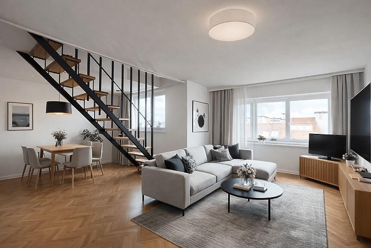 Eladó egy 88nm-es, belső két szintes jó elosztású 4 emeletes tégla építésű társasház 4. emeletén lévő1+2 félszobás lakás.