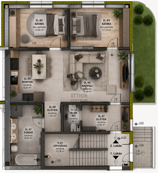 -Átgondolt, praktikus elrendezés, a lakás alapterülete 69,85 nm