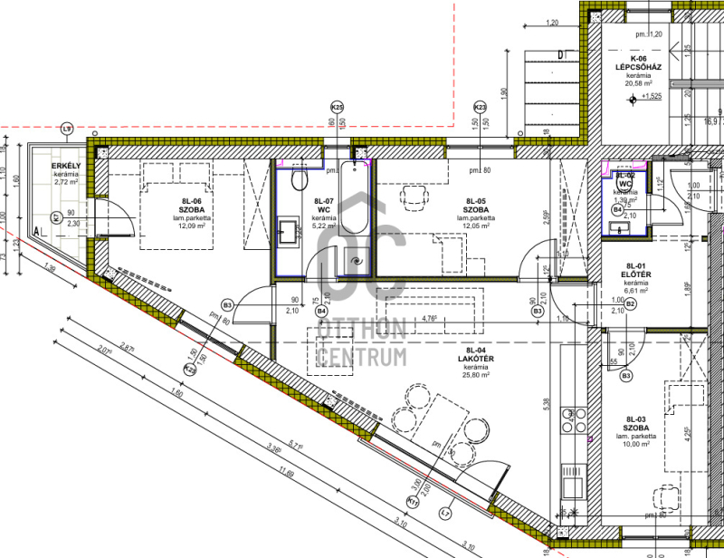 -Átgondolt, praktikus elrendezés, a lakás alapterülete 74,24nm
