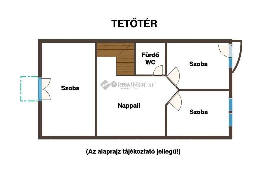 - a tetőtérben: egy tágas második nappali, továbbá egy nagyobb és két kisebb szoba, illetve fürdőszoba lett kialakítva