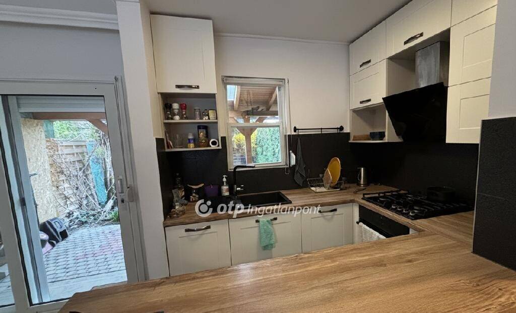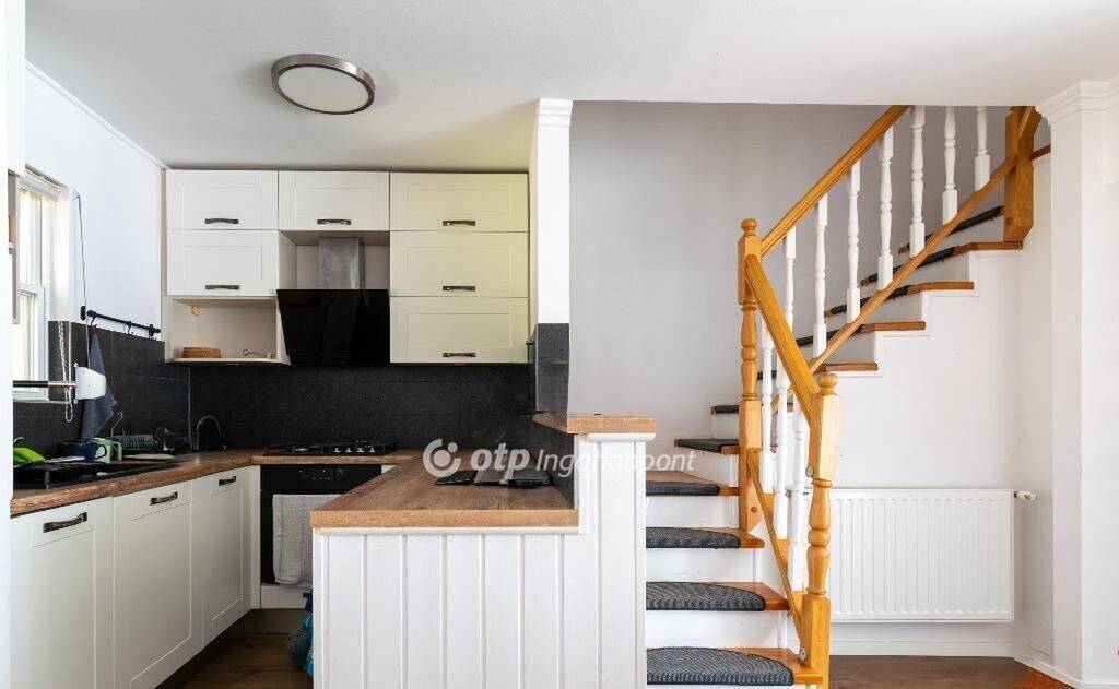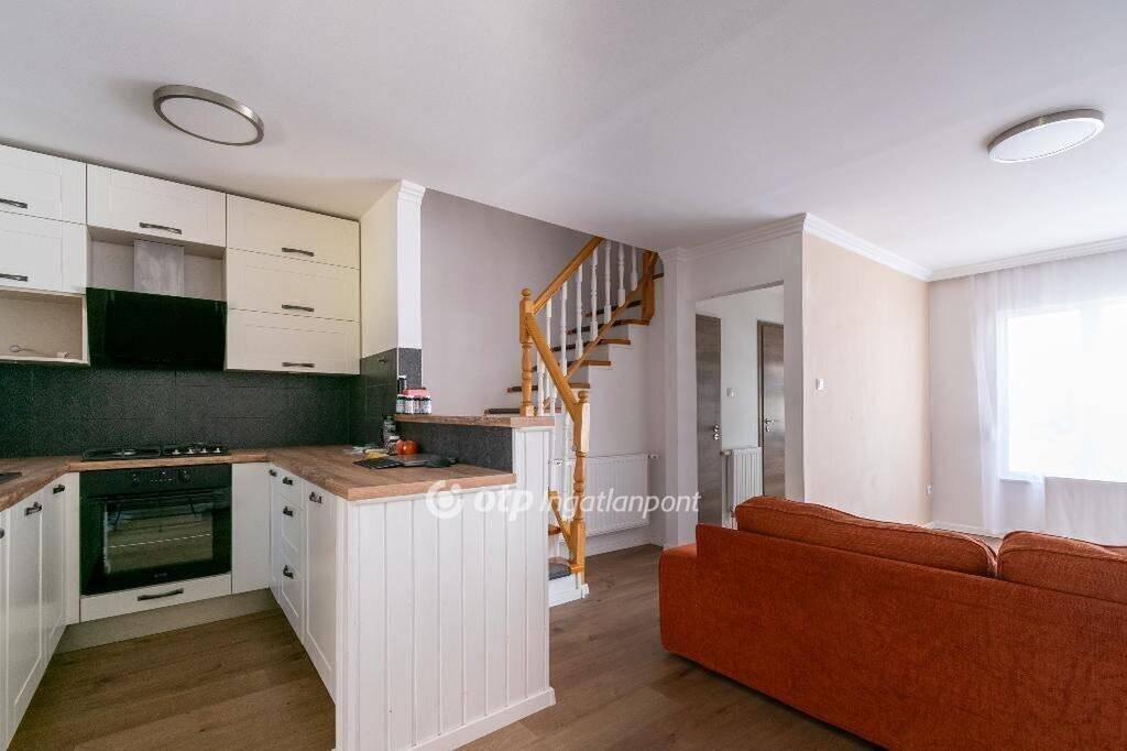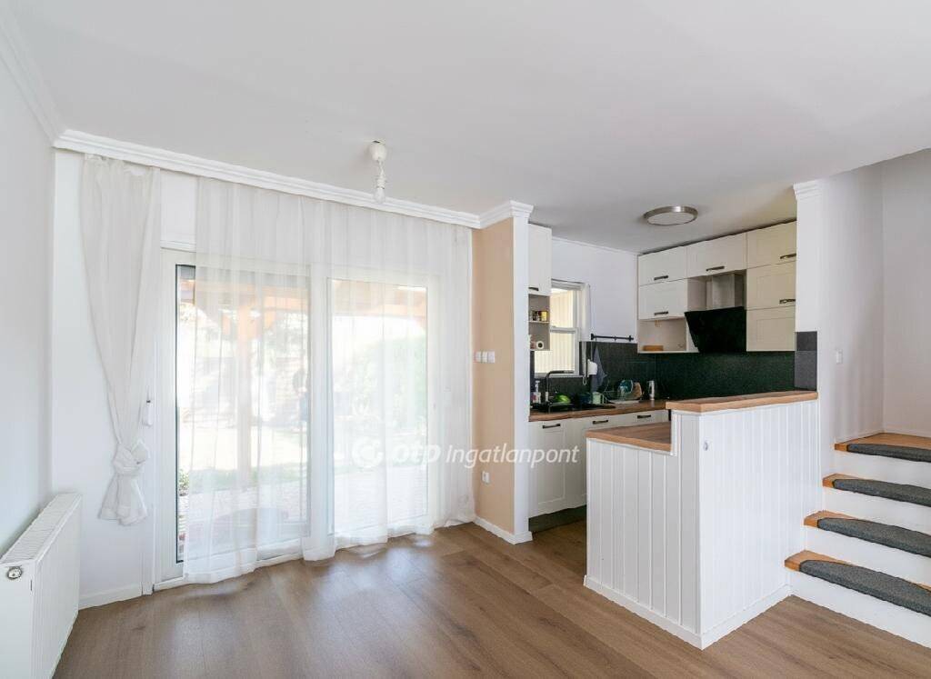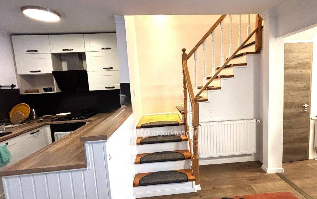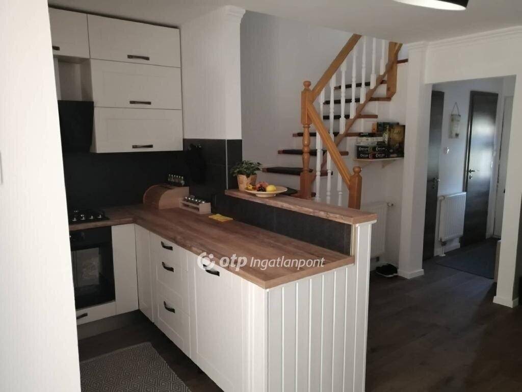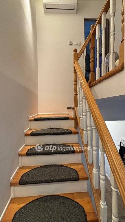Elrendezése: a pinceszinten garázs található, mely tároló jellegű térként is használható. A földszinten amerikai konyhás nappali, külön WC található és lépcsős lejárat a garázsba. A nappaliból lehet kilépni a kerítéssel körbekerített saját kertbe, ahol térkövezett fedett terasz is található. A felső szinten két hálószoba és fürdőszoba van és tárolásra alkalmas padlástér. A lakás teljes felújításon esett át. Hűtő-fűtő klíma, külső szigetelés, redőnnyel és szúnyoghálóval felszerelt nyílászárók kerültek beépítésre és gépesített, vadonatúj konyhabútor. A könnyűszerkezetes építési módnak és a korszerű fűtési rendszernek köszönhetően a fenntartási költségek rendkívül kedvezőek. Egyik különlegessége az ingatlannak a 35 nm-es többfunkciós mélygarázs és a plusz extra parkolási lehetőségek.