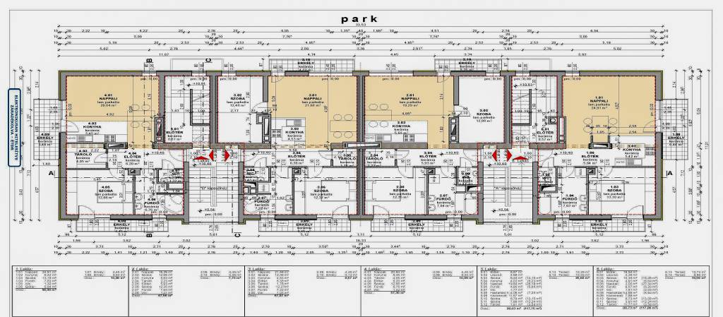 Homlokzati falak: Meglévő hossz- és harántfőfalak, valamint homlokzati tartófalak 28-42 cm vastagságban. Az új teherhordó homlokzati falak 30 cm vastag YTONG falazóelemekből készülnek.