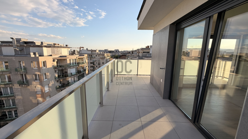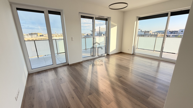 A lakás egyik legnagyobb értéke a 29 nm-es panorámás terasz, amely ideális pihenésre és kikapcsolódásra, miközben páratlan kilátást biztosít a városra – egészen a Gellért tér irányába is. A tájolásnak köszönhetően a naplemente látványa is kiemelkedő, ami különleges hangulatot ad az esti óráknak.