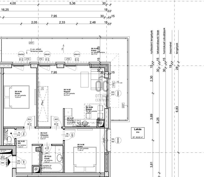 - A nettó 62 nm-es lakás jól átgondolt elosztású, külön nyíló, kényelmesen berendezhető szobákkal, ahol a nappali és az egyik hálószoba közvetlen kapcsolatban áll a 29 nm-es terasszal.