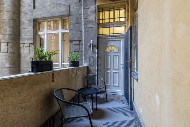 A lakás egy 1900 körül épült, klasszikus polgári társasházban található, amely hűen tükrözi a századfordulós budapesti építészet hangulatát. A vastag falak, a nagy belmagasság és a belső udvaros kialakítás mind hozzájárulnak az épület karakteréhez.